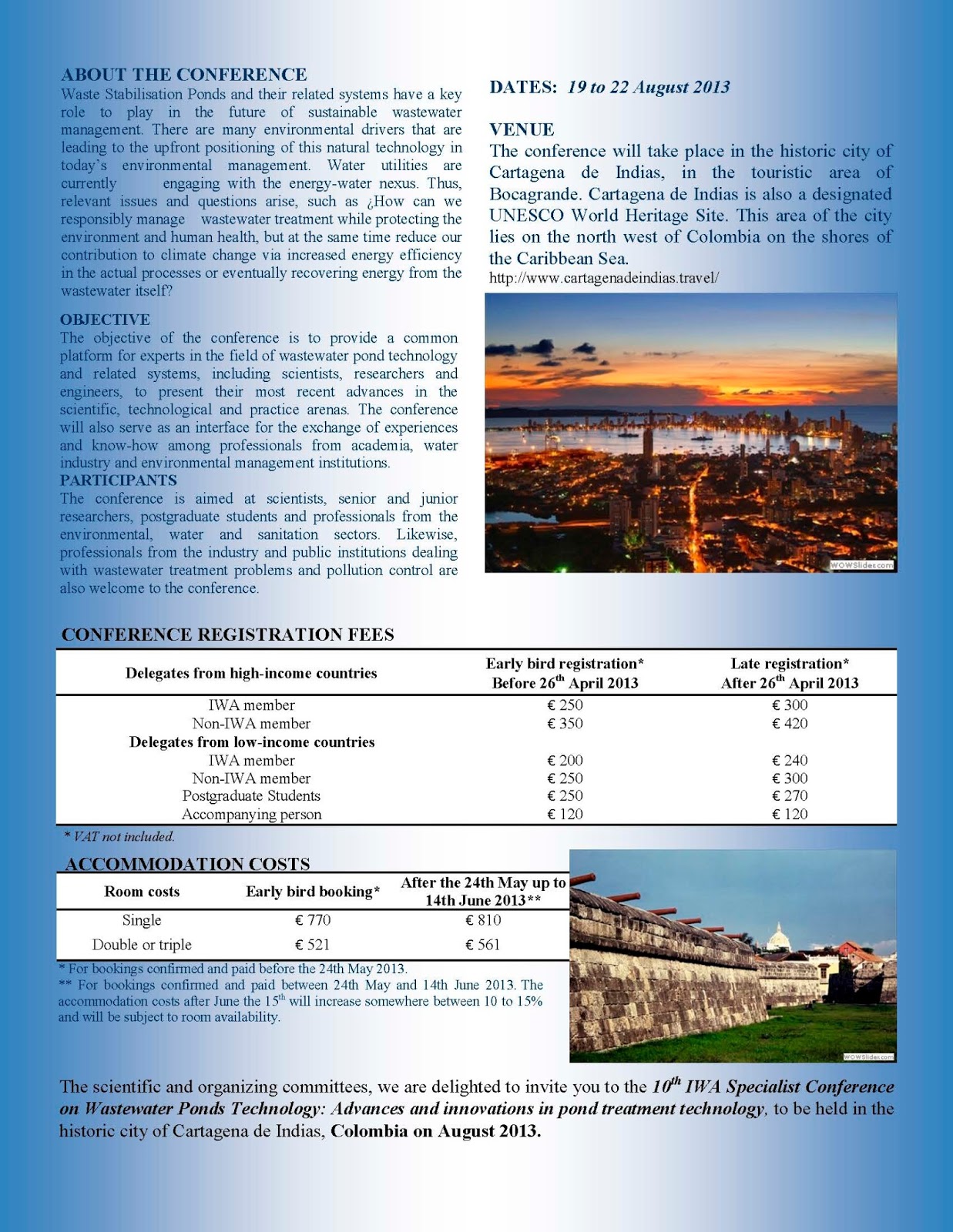 La Sociedad de Ingeniería Hidráulica de la UNAICC, el Instituto Nacional de Recursos Hidráulicos, la Universidad Autónoma Chapingo y el Instituto Mexicano de Tecnología del Agua les convoca al XI Congreso Internacional de Ingeniería Hidráulica y el VII Seminario Internacional de Uso Integral del Agua, que celebraremos conjuntamente en Cayo Coco, provincia central de Ciego de Ávila, del 1 al 5 de Octubre de 2013.